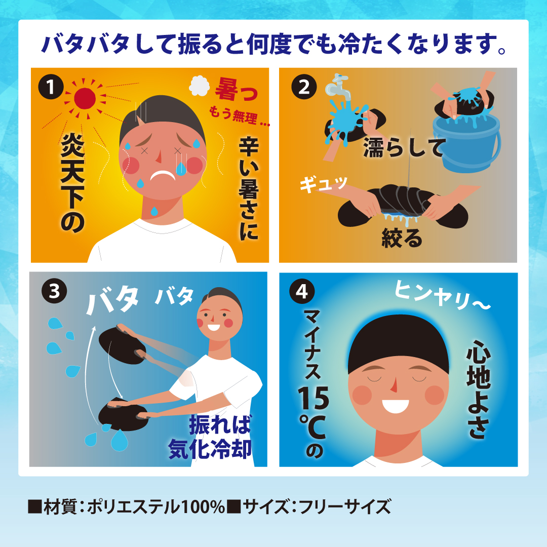 ※1 -15℃の極冷体感は社内検査の結果、11名のモニター全員の皮膚表面温度と気化冷却状態の製品表面温度の差が15℃以上を記録し、使用者があまりの冷たさに驚いた事実から表示しています。