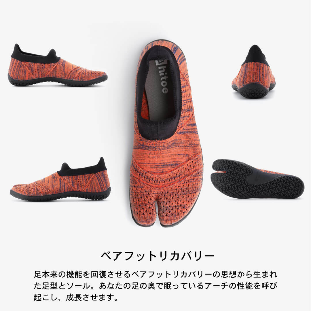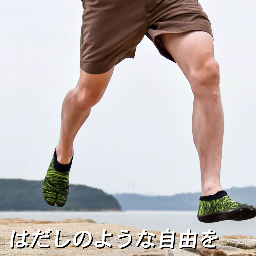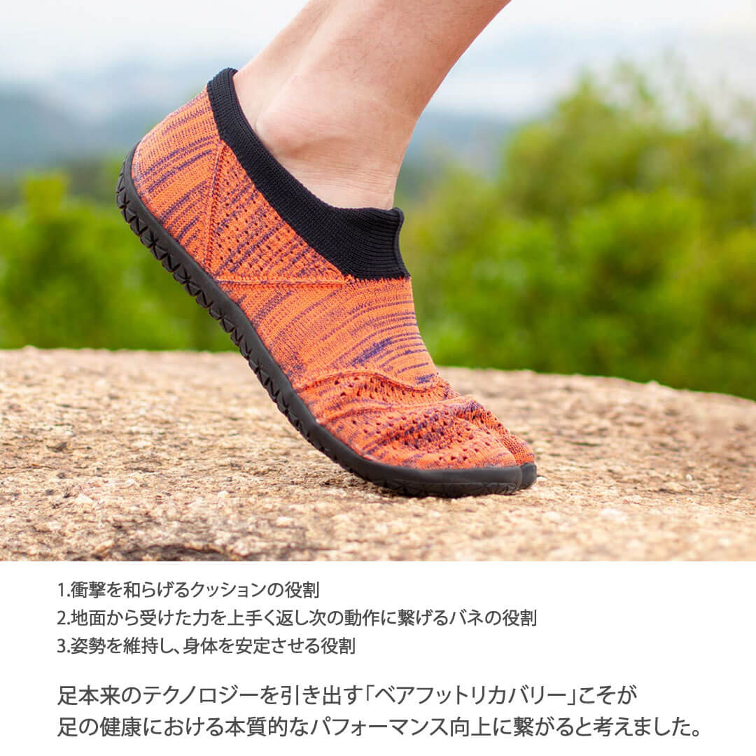 足袋型シューズを履くことで、アーチが整い足底筋膜が刺激され本来のクッション性回復に繋がります。