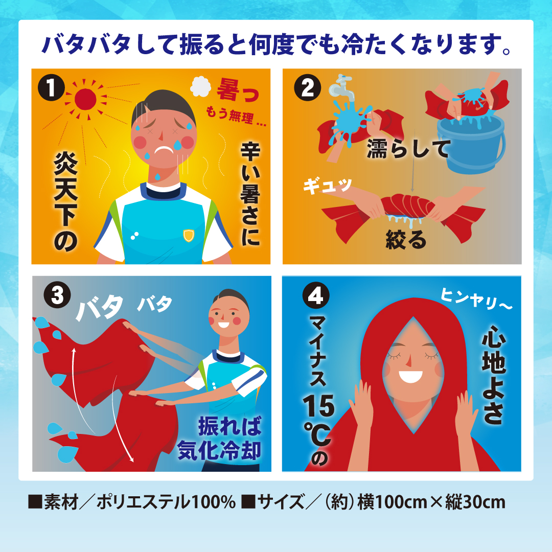 COOL MAKER冷却タオルは濡らして絞り、振るだけで生地が-15℃※1の冷感を発揮します。UVカット率99%※2で、強い日差しからもしっかりガード。夏のスポーツを頑張るお子様を熱中症から守りたい親御さん、暑さと戦うアスリートのパフォーマンス維持に最適!試合前後のアイシングやクールダウンにも大活躍。プレーヤーだけでなく、熱中症やUVダメージを防ぎたいすべての方におすすめです。